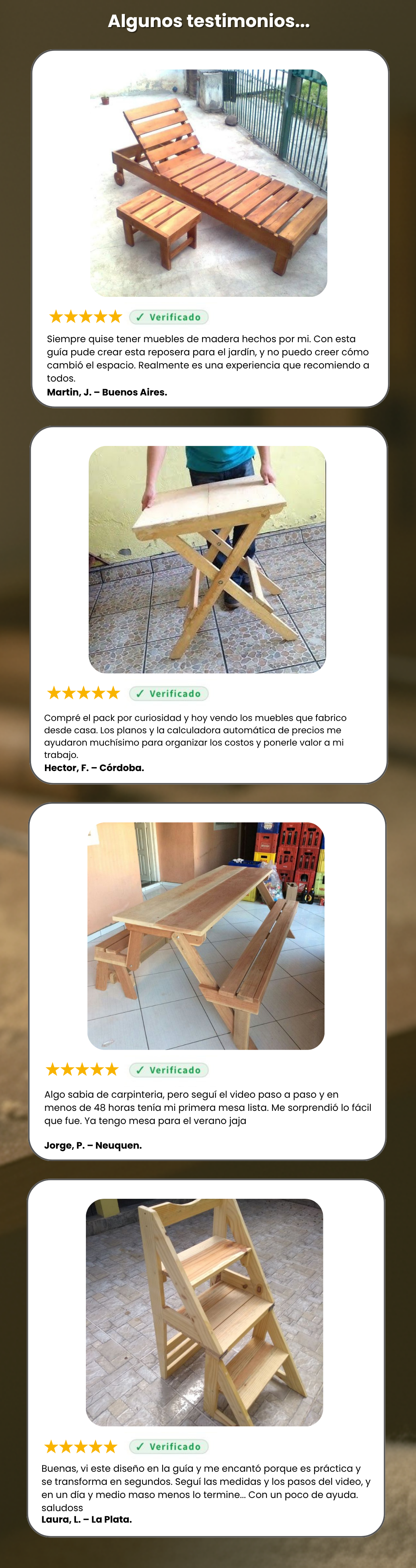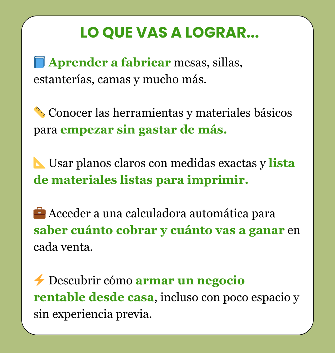 Recibís acceso inmediato a un archivo digital (PDF) con todos los planos y materiales, además de videos explicativos y la calculadora de precios.